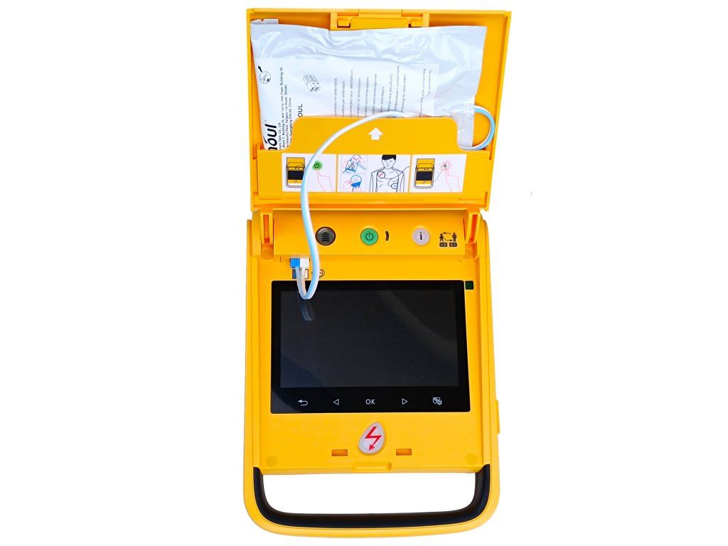 Inteligentný AED defibrilátor s farebným displejom, hlasovými pokynmi a diaľkovým monitoringom pre maximálnu istotu pri záchrane života.